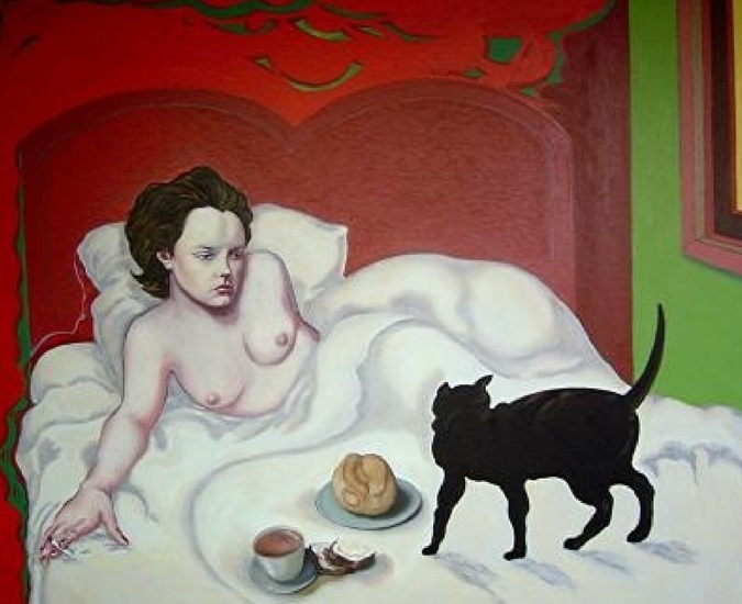 Staand naakt voor schilderij