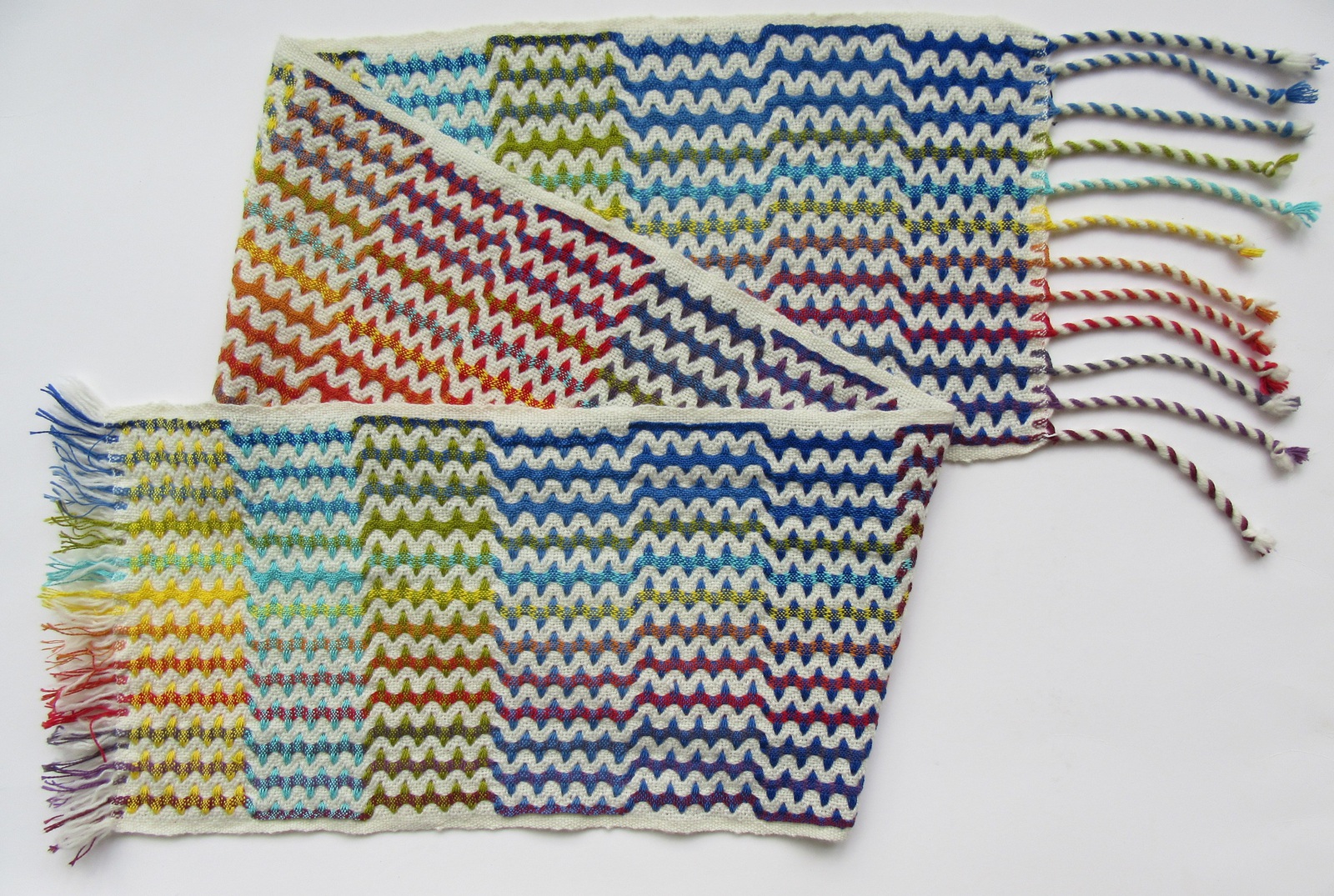 2023 schijndubbel sjaal witte wol en gekleurde katoen