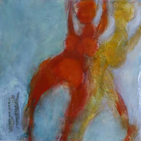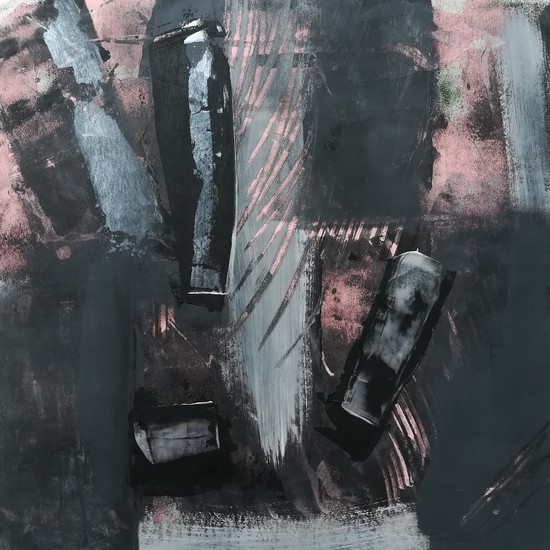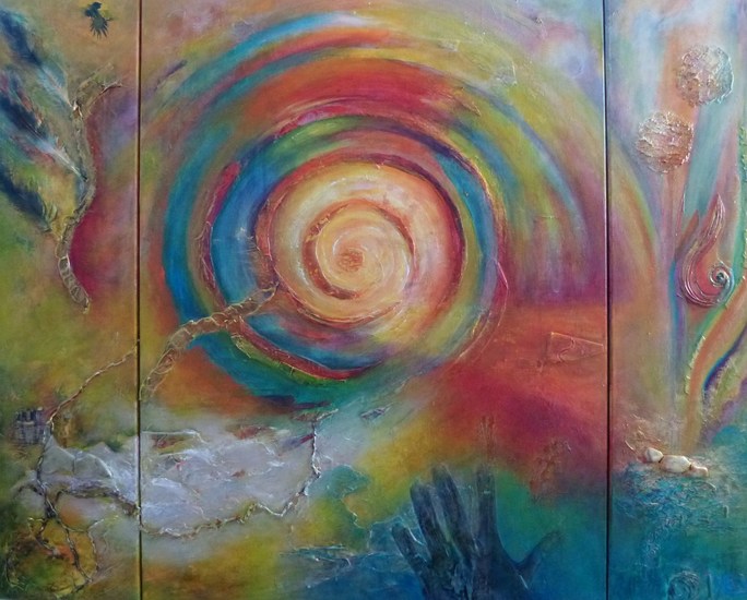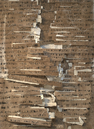 Groot Wandobject. 114 mini doekjes acryl. gelijmd op paneel. — €700,00