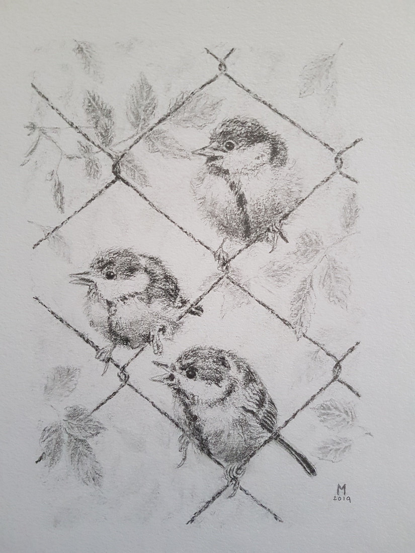 Drie jonge koolmeesjes