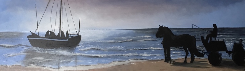 Schildpad aan zee strand (classic verf uit pigment medium en olie)