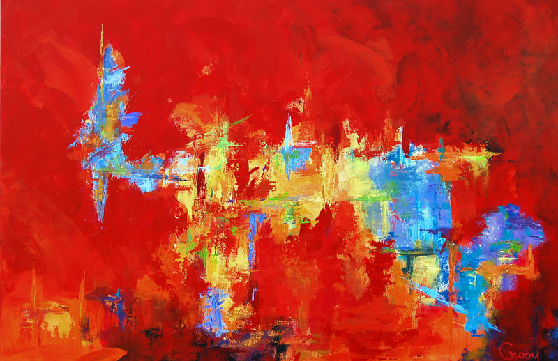 'Handschoen van de Nacht' - groot abstract schilderij; niet meer beschikbaar - Fons Heijnsbroek
