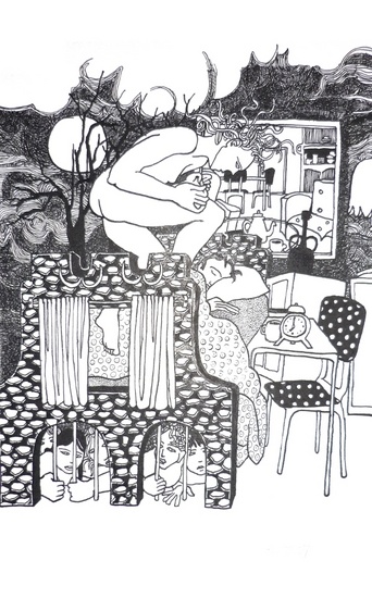'Swedish windows 2.' - kleine inkt-schets op papier; niet meer beschikbaar - Fons Heijnsbroek