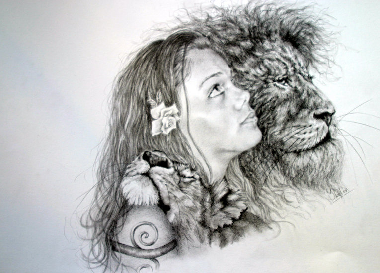 jonge vrouw met leeuwen
