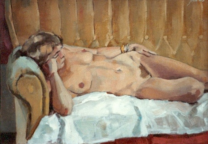 Staand naakt voor schilderij