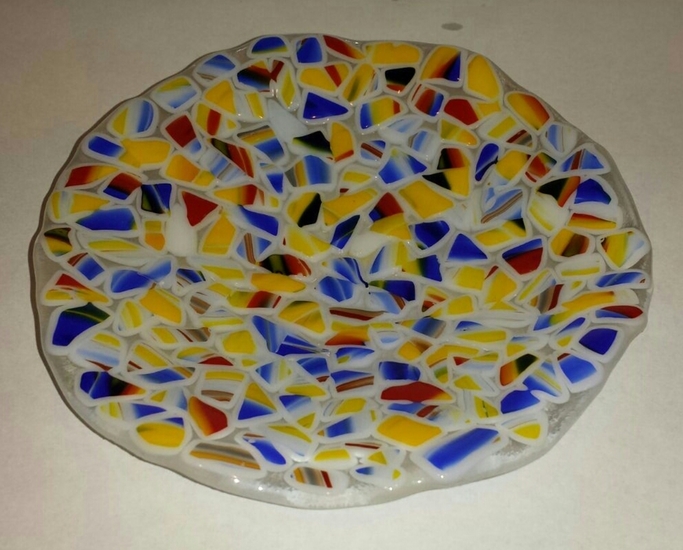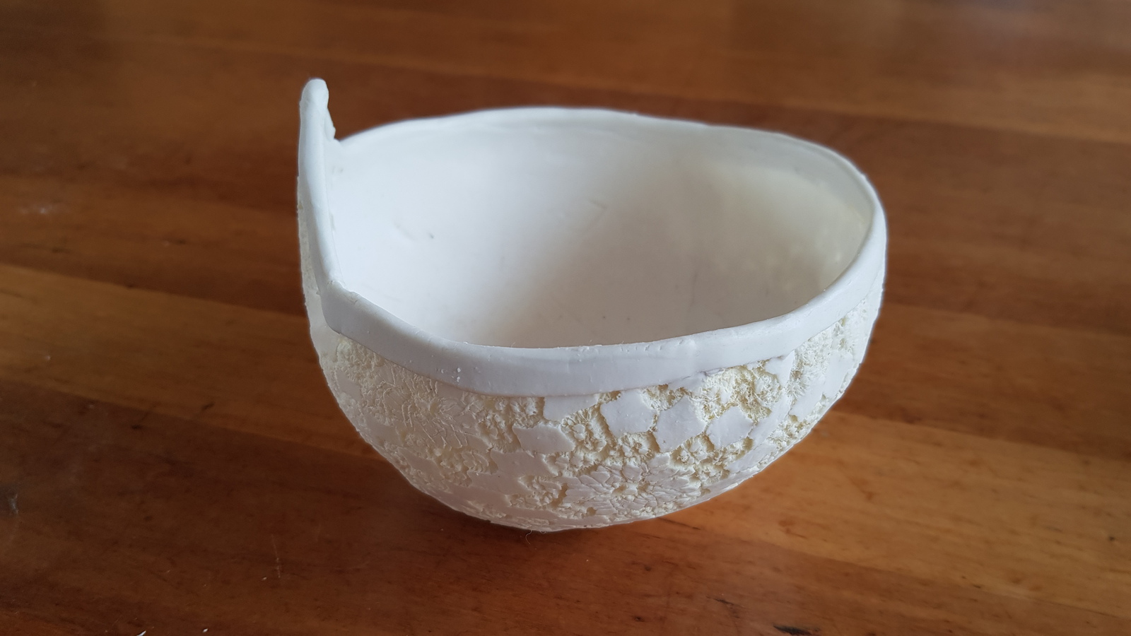 Schaaltje 6641 ingekleurd porselein, ingelegd met hartjes.