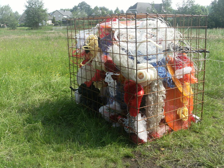 Hanger (2) van runder been met spechtje van gouden regen hout