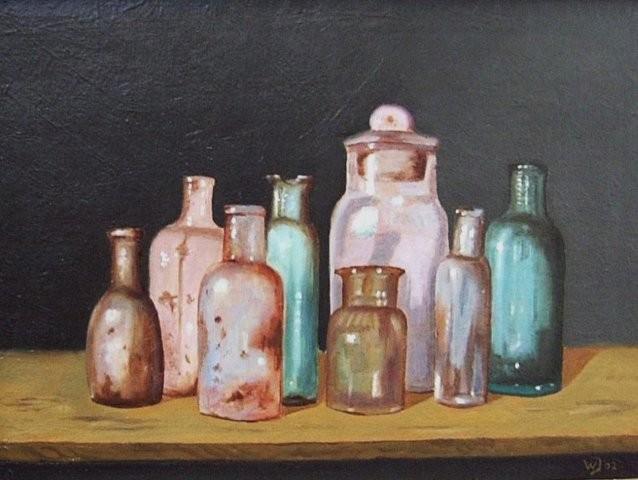 Franse kruik, peren, glas, pijpjes