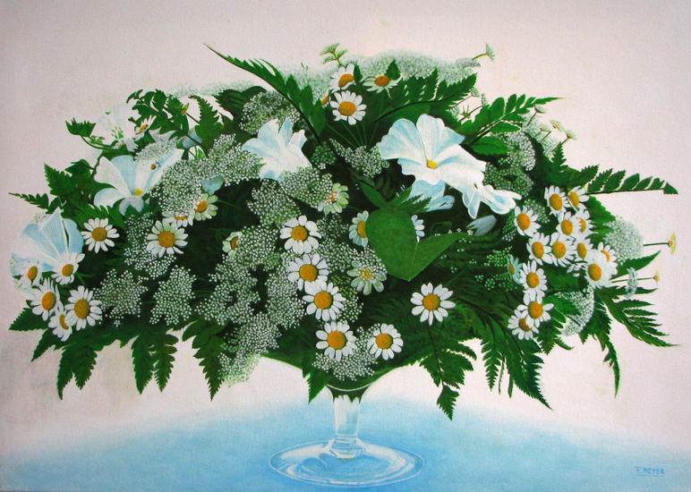 Bloemstuk met margrietjes en gipskruid