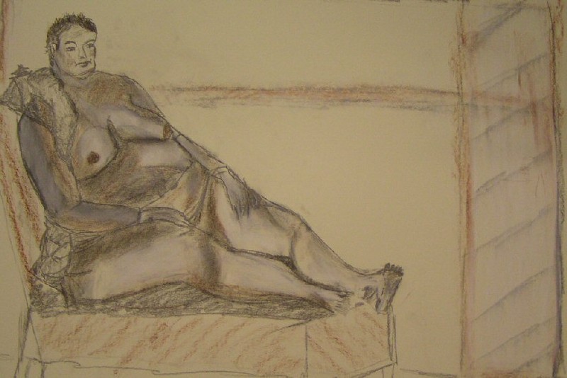 Naaktstudie vrouw, getekend met conté de paris — €250,00