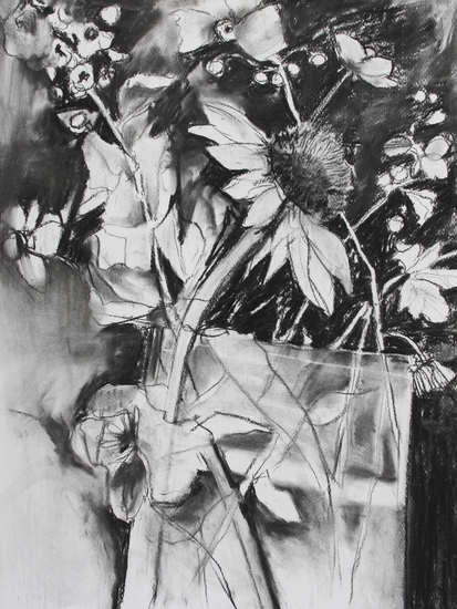 De Martenastins gezien vanuit de Martenatuin in Franeker - Houtskool