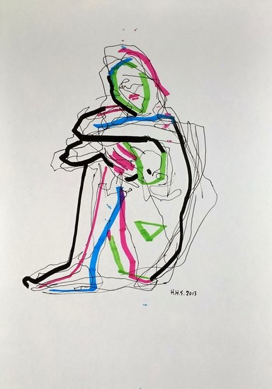 Asielzoeker over het hek - potlood-schets voor gouache, van Paul Werner