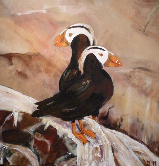 Gekuifde papegaaiduikers op rots