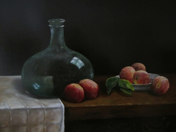 groenefles met perziken