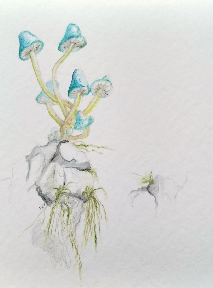 Lichtblauwe paddenstoeltjes