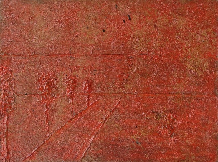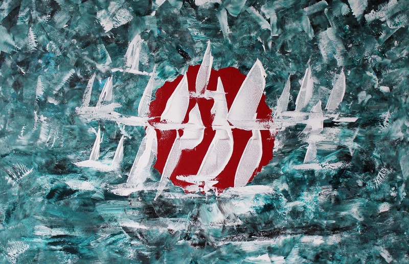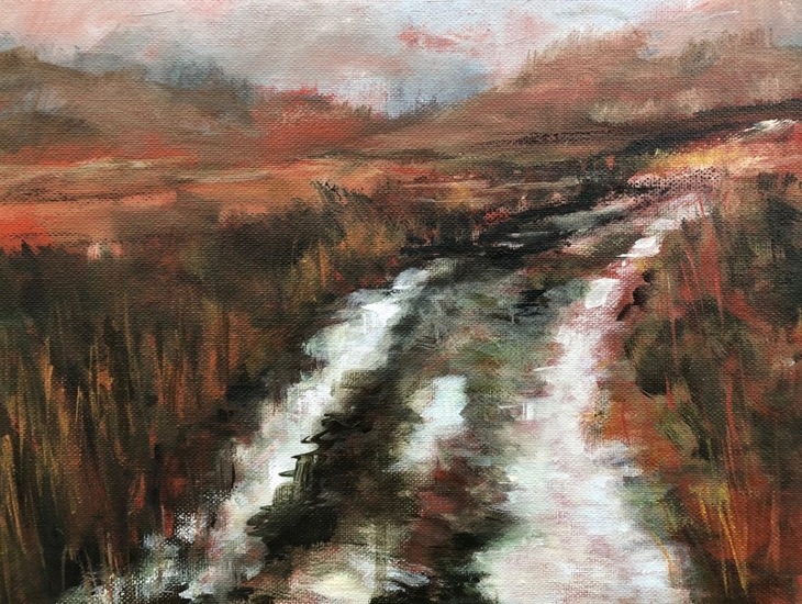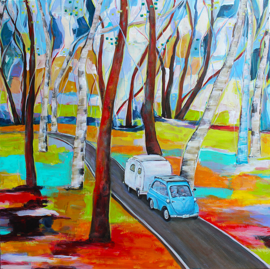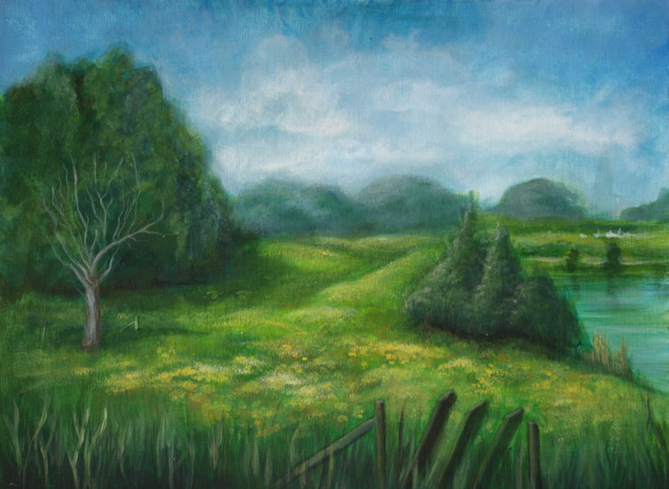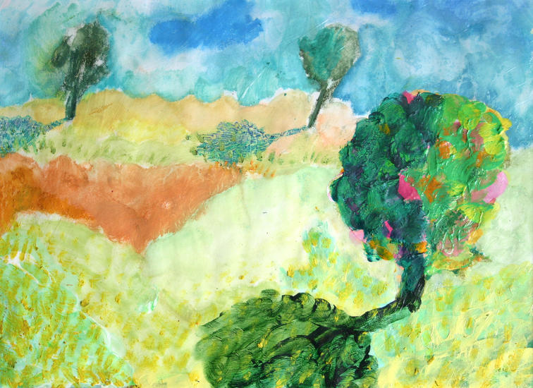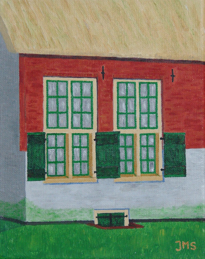 Fantasie Hollandse molen met wolkenpartij en struiken in herfstkleur