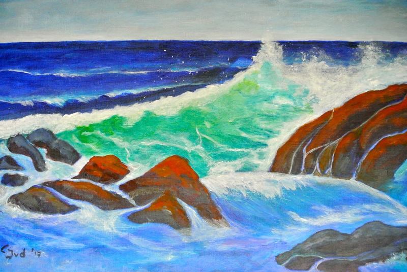 Brekende golven op de rotsen