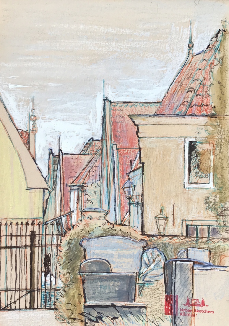 Zonnige zomerochtend in Thorn - Potlood