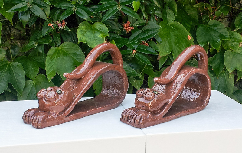 Beeld met koetje op het hoofd