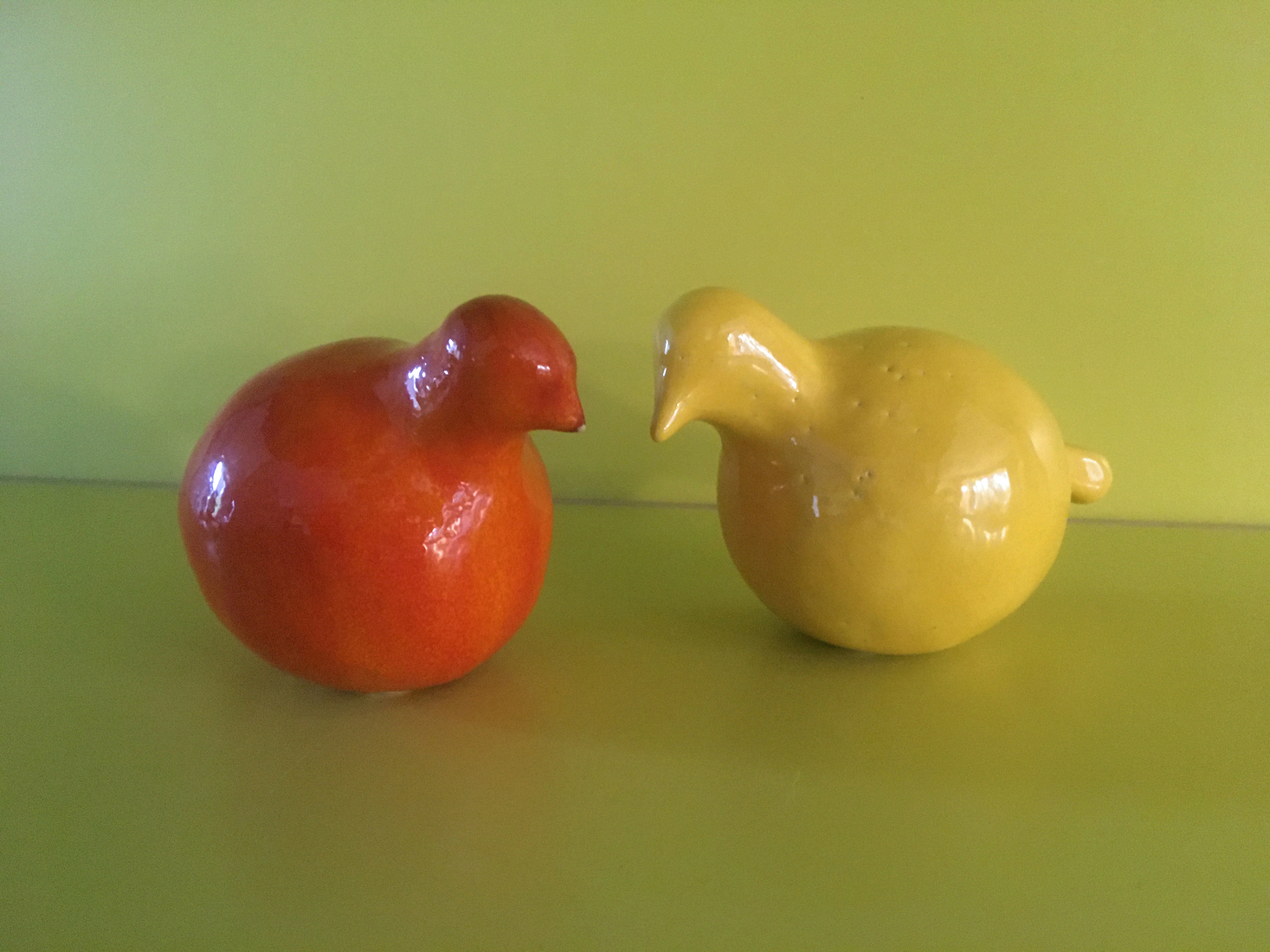 Een oranje en een gele vogel