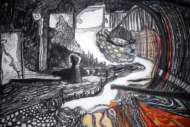 MAN VIST IN ZEE - tekening in zwart wit krijt, te koop — €150,00