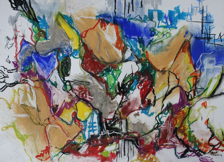 'Zij twee' - abstracte kunst op papier in kleur; niet meer beschikbaar - Fons Heijnsbroek