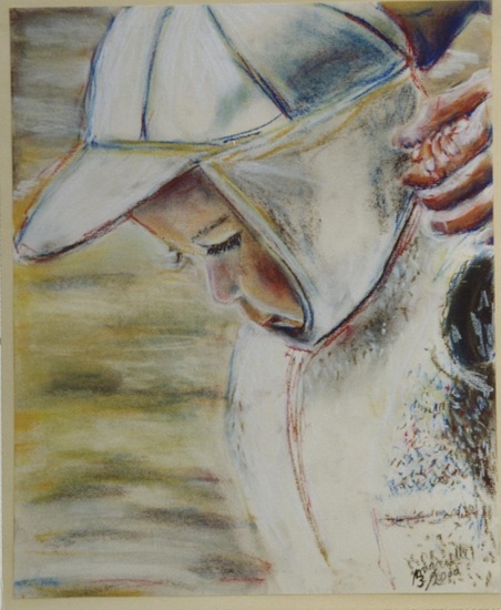 Asielzoeker over het hek - potlood-schets voor gouache, van Paul Werner