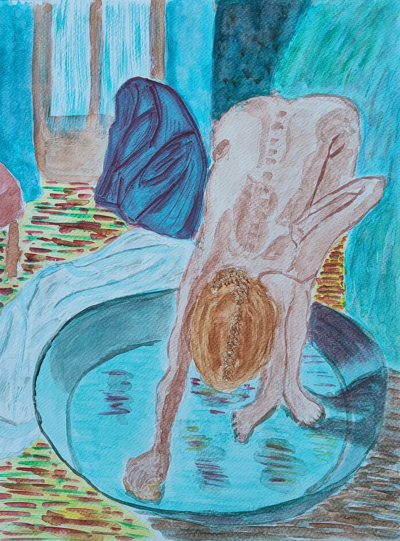 Vrouw wast zich in teil