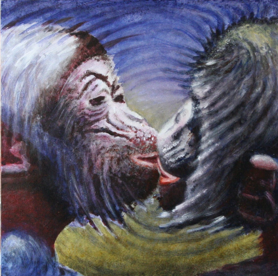 kussende jonge chimpansees