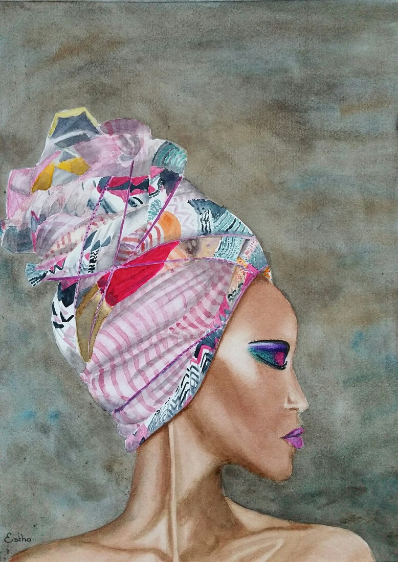 dame met kleurige hoofddoek