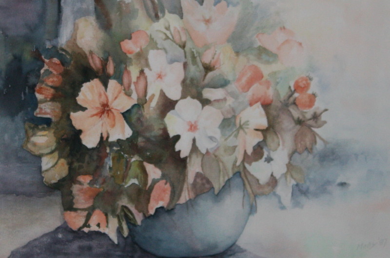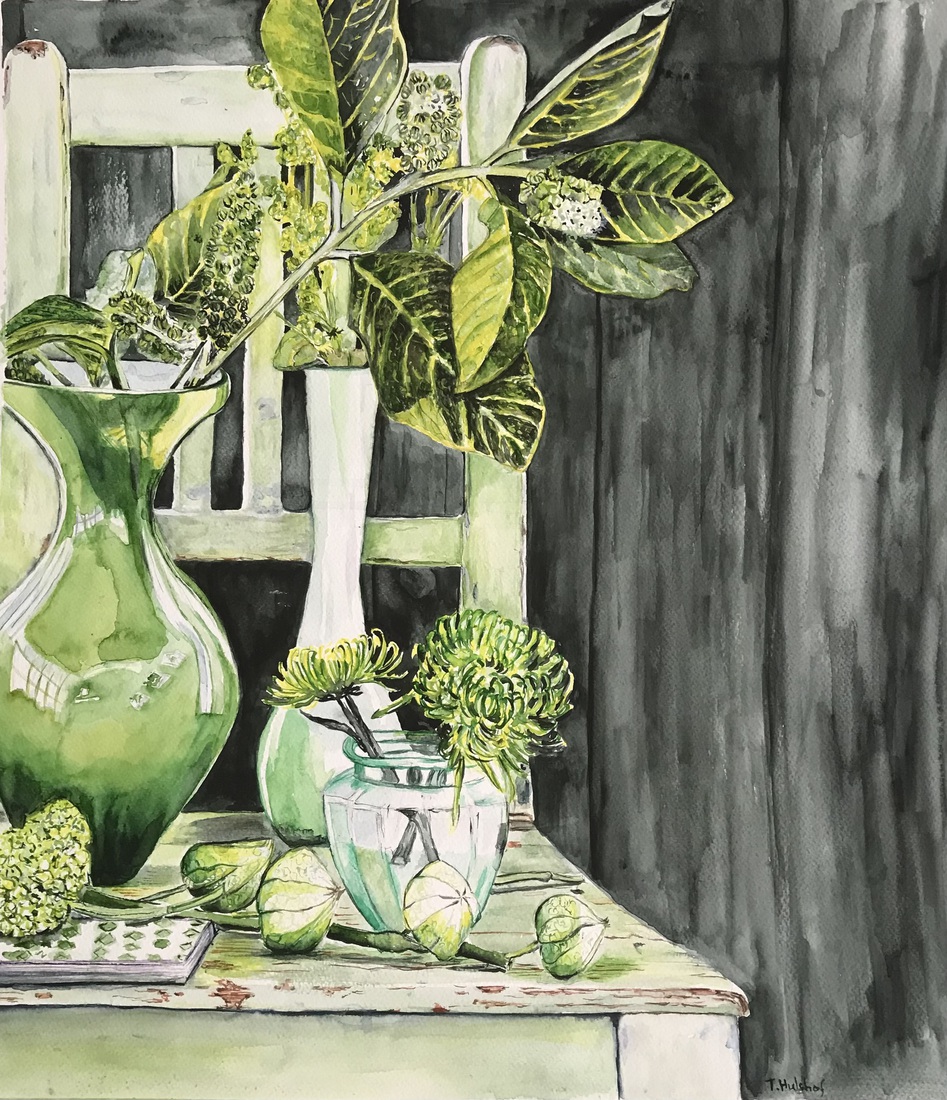 Zonnebloemen in Vaas, aquarel van bloemen.