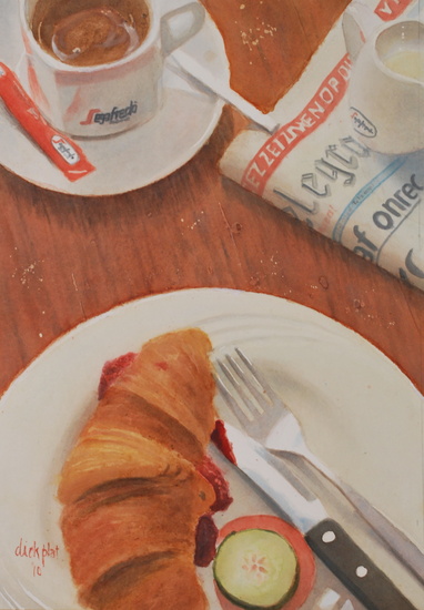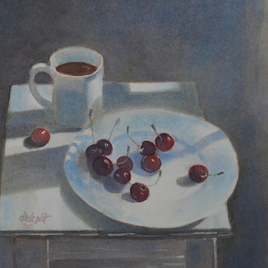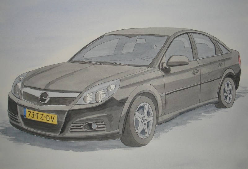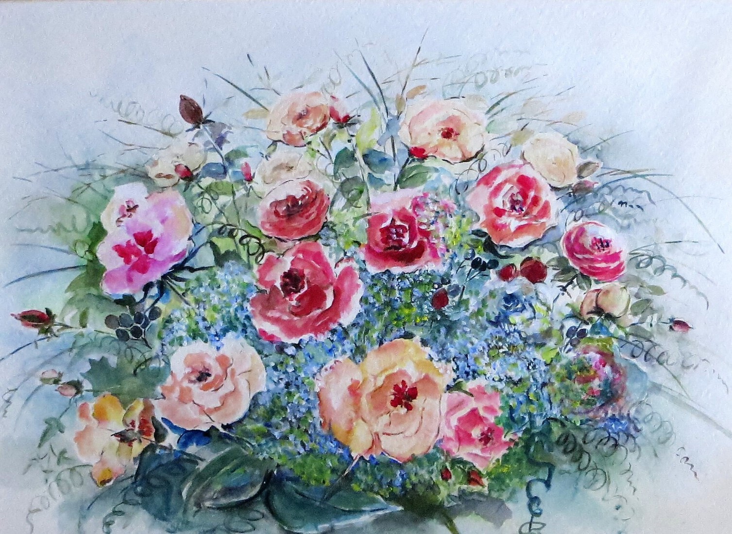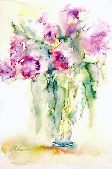 Blauwe Hortensia’s in Vaas, aquarel van bloemen in vaas