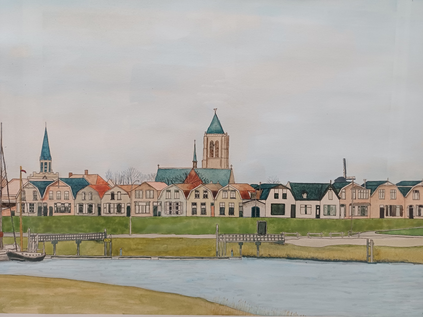 Reddingssloepen, aquarel van sloepen