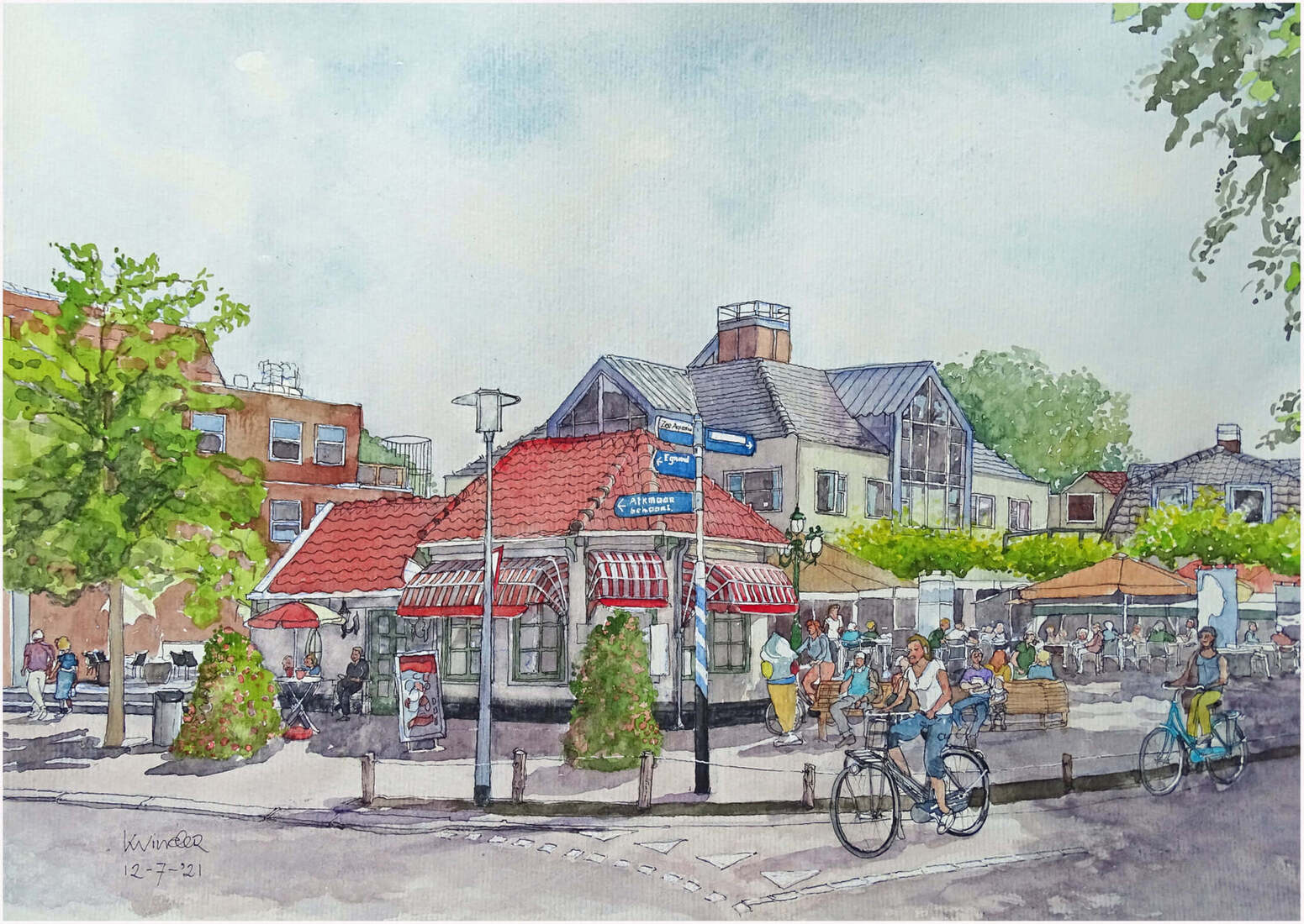 Amsterdam -Brouwersgracht/Prinsengracht met cafe Papeneiland