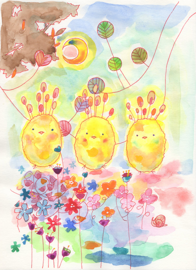 'Open kooi' - subtiele kleurrijke gouache op papier uit 2010; niet meer beschikbaar