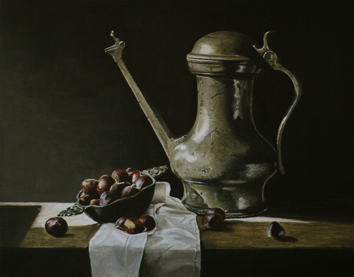 Stilleven met 17 eeuwse Jan Steenkan