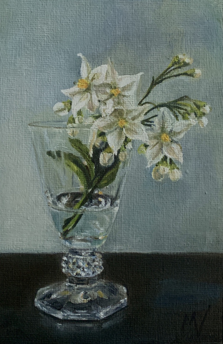 Stilleven met blauwe bloemen en andere dingen — €375,00