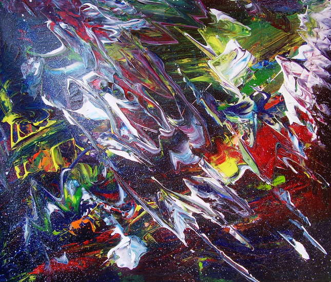 'Winter Flush' - een modern, abstract en groot schilderij van Benfo; samen geschilderd door Ben Vollers & Fons Heijnsbroek; te koop — €1900,00