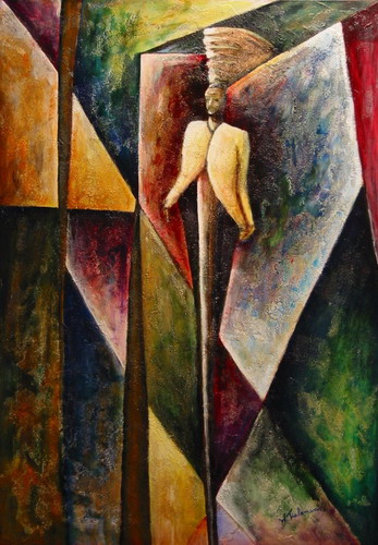 Vrouw in kubistisch landschap
