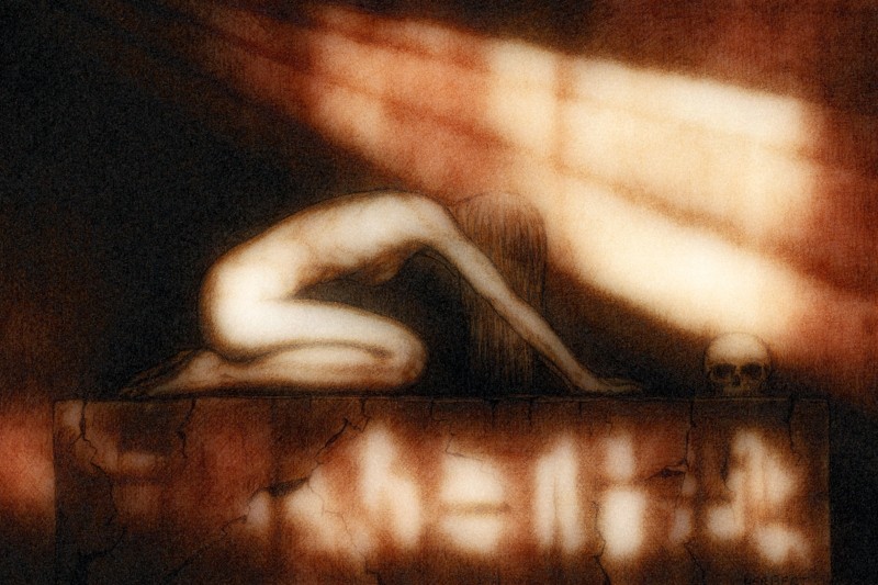 Portret Caro, inkt op linnen doek €395 — €395,00