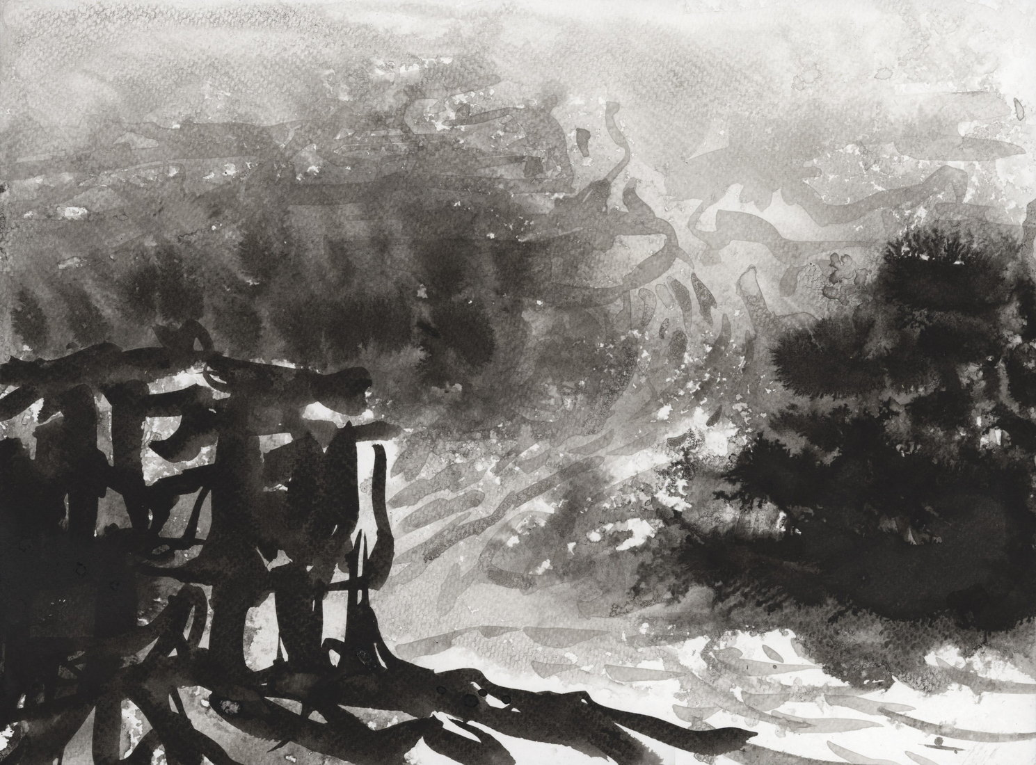MARQUA112 Skyline markt 's-Hertogenbosch in Oost-Indische inkt