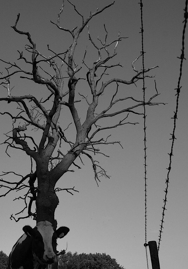 Koe en prikkeldraad