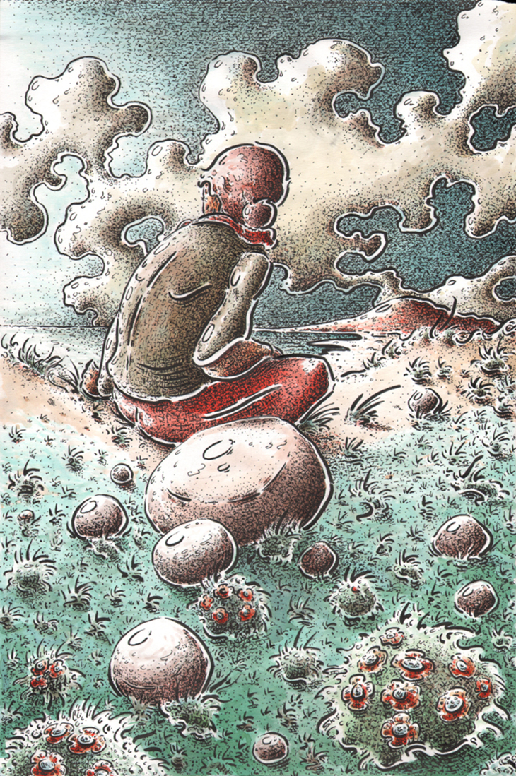 Meisjes in de greep van misleidend genot. Keramiek beeld