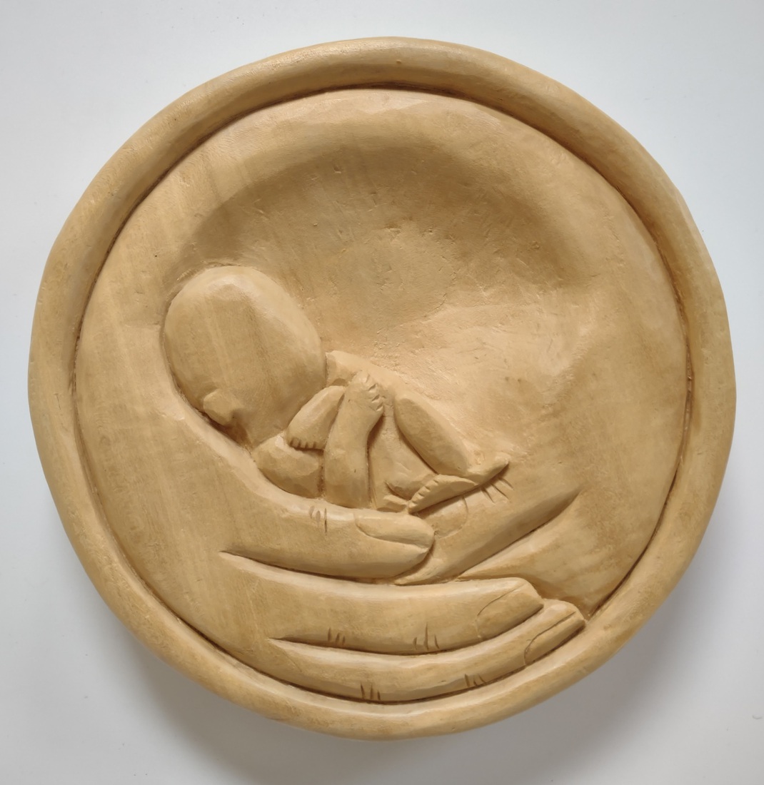 Kreukelvaasje met driftwood flower luchtdrogende klei.K24 — €70,00