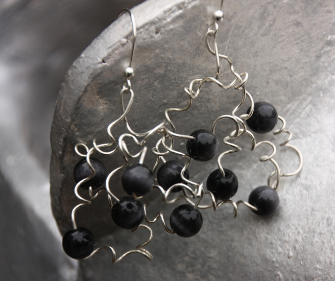 Oorbellen zilver/zwarte glaskralen