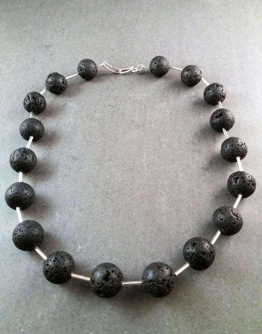 collier van zilveren buisjes en lavasteen