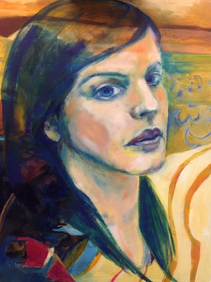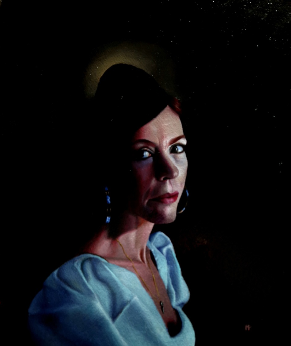 Portret vrouw olieverf goudreliefverf in zwarte lijst