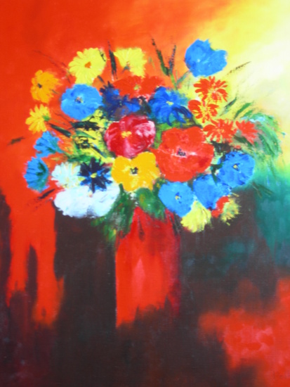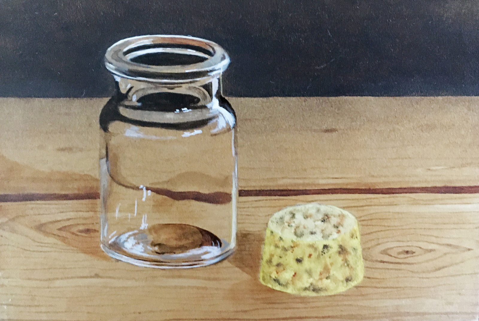 Oude wijnfles (kattekop) met gemberpotje en mini paprika's