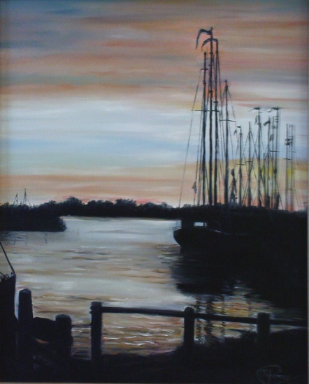 Havengezicht bij avondlicht