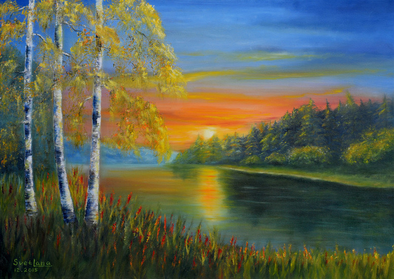 Zonsondergang op het meer